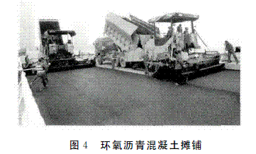 0 引 言 环氧沥青是一种将环氧树脂加入沥青,经过与固化剂发生固化反应,形成不可逆的固化物,从而使沥青性质从热塑形转化为热固性的一种路用材料[1]。因此,环氧沥青有着比普通沥青更加优异的物理、力学性能。通过将环氧沥青结合料与级配集料拌和而形成的强度高、刚性大的沥青混凝土,具有良好的耐腐蚀性、高温稳定性、水稳定性和抗疲劳特性。由于具有良好的路用性能,使得环氧沥青混凝土从2000年开始被引入到国内大跨径钢桥面铺装工程中,并得到成功应用[2]。本文通过对长沙市福元路湘江大桥钢混结合梁桥面环氧沥青混凝土铺装施工技术的研究,提出国产环氧沥青混凝土相关施工技术要点,可为同类施工提供参考。 1 工程概况 长沙市福元路湘江大桥位于银盆岭大桥与三汊矶大桥中间偏北的位置,距上游银盆岭大桥约2.9km,距下游三汊矶大桥约2.7km。该桥主桥、水中引桥及东岸世纪城引桥上部结构均采用钢主梁、混凝土桥面板相结合形式,行车道铺装采用上面层为SMA改性沥青混凝土,下面层为环氧沥青混凝土的铺装结构:4.5cm SMA 改性沥青混凝土+乳化沥青粘层+3.5cm 环氧沥青混凝土+环氧沥青粘结防水层。 2 环氧沥青混凝土施工工艺 2.1 环氧沥青混凝土材料选择 环氧沥青混凝土施工过程中的主要材料为矿料和环氧沥青。为满足桥面沥青混凝土铺装的性能要求,必须选好这两种材料[3]。 环氧沥青混凝土对矿料的要求较高,矿料中的集料主要采用清洁、干燥、坚硬、耐磨的非酸性矿料。本工程选用表面100%为破碎面的玄武岩,形状以近似立方体为主,其技术要求见表1。填料采用的矿粉为石灰石粉,其技术要求见表2。 环氧沥青采用国产环氧沥青结合料,由2种组分组成:组分A(环氧树脂)和组分B(石油沥青和固化剂组成的均质合成物)。两种组分混合后,环氧沥青的技术指标如表3所示。 2.2 环氧沥青混凝土配合比的确定 在施工前,需要进行环氧沥青混合料的配合比设计,包括目标配合比、生产配合比和生产配合比验证三个阶段。 矿料级配确定后,采用马歇尔试验方法进行沥青混合料最佳沥青用量的确定。将使用同一油石比制成的试件分为两组,一组为固化试件,另一组为未固化试件。对于要求固化的试件,成型后即放入120℃的恒温箱中养护固化4h,完成后取出冷却,进行试验;对于未固化的试件,成型冷却后即进行试验。 通过马歇尔试验,同时考虑到在实际铺装过程中环氧沥青混合料的固化过程不同于实验室,综合考查固化及未固化试件的性能后,确定最佳油石比。从而确定目标配合比,并进行生产配合比的调整。 2.3 原桥面处理 2.3.1 喷砂前准备 (1)水泥混凝土桥面钢筋露出长度要求不大于3mm,不满足要求时需进行处理。虽然吊耳在桥面板安装后被割除,但通常会留有1~2cm的短茬,此时须将其切割至与桥面板齐平,并将端部打磨平滑。 (2)混凝土桥面平整度(尤其是湿接缝处)、高程等应满足规范要求。通过测量全桥每10m 横断面特征点的标高,再根据监控单位提供的理论成桥线型高程,计算出各特征点与理论值的高差。对于大面积偏高的部位,必须进行桥面板铣刨处理。 (3)桥面垃圾应清理干净,无明显的凸起物。对湿接缝及护栏基座处的混凝土残留块及浮浆需进行凿除。 2.3.2 喷砂 抛丸机沿桥长方向行走,从排水的上游方向开始施工,工作面搭接宽度为5~10cm,如图1所示。在不适宜抛丸的少数部位可使用角磨机或手持式抛丸机打磨处理。喷砂打毛处理产生的灰尘应装袋处理,集中运送到指定场所。 2.4 防水层洒布 钢混结合梁区段桥面铺装采用的环氧沥青粘结防水层需使用专用洒布机喷洒。 2.4.1 喷洒环氧沥青粘结料 根据施工要求和现场条件确定洒布量为0.9±0.2kg·m-2,洒布宽度为3.0~3.7m。在沥青洒布机喷洒不到的地方采用手工涂刷。 凡与铺装层接触的部位都属于喷洒区。当天的喷洒区要与计划铺装层的施工区相对应,且喷洒区边缘要比铺装区边缘多出2~3cm。对喷洒区边缘不与铺装层接触的结构物表面加以保护(用移动遮板加以遮挡),避免溅上沥青受到污染。 粘结层应均匀、连续施工(图2),喷洒区边缘保持横平竖直,且严格控制洒布量。纵缝搭接宽度宜为10~20cm,安排专人做好横缝处理。 2.4.2 碎石撒布 环氧沥青防水层施工完成后,为防止后续施工粘轮,宜均匀撒布粒径为5~10mm的碎石(图3),覆盖率为40%~60%,要求碎石洁净干燥,撒布均匀,不得有漏撒和堆积现象。 2.5 环氧沥青混凝土生产 生产环氧沥青混凝土主要有以下几个过程。 2.5.1 试拌 正式拌和前先进行试拌,取样进行马歇尔稳定试验,检验温度、矿料级配及沥青含量的合格性,如不符合要求需进行调整。 2.5.2 贮油罐内材料的预热 在拌制环氧沥青混合料之前,要预先将环氧沥青A 、B组分加热脱筒,分别泵入贮罐中。A 组分加热至87℃±5℃,B组分加热至130℃±5℃,并保持温度稳定于上述范围。环氧沥青A 组分与B组分的质量比为1∶5.2,误差在±10%以内。A、B组分分别通过两个管道注入,调整相应泵速,用流量计控制比例。 2.5.3 控制矿料加热温度 冷料经加热后进入热料仓,按生产配合比设计确定的各热料仓集料质量及石粉、矿粉的质量投入拌缸,然后出料测温。这一工序一般需重复3~5遍,直至出来的矿料温度稳定在125 ℃~135 ℃的范围内。 2.5.4 控制混合料出料温度 当矿料温度稳定后,即可加入结合料进行混合料的拌和。混合料